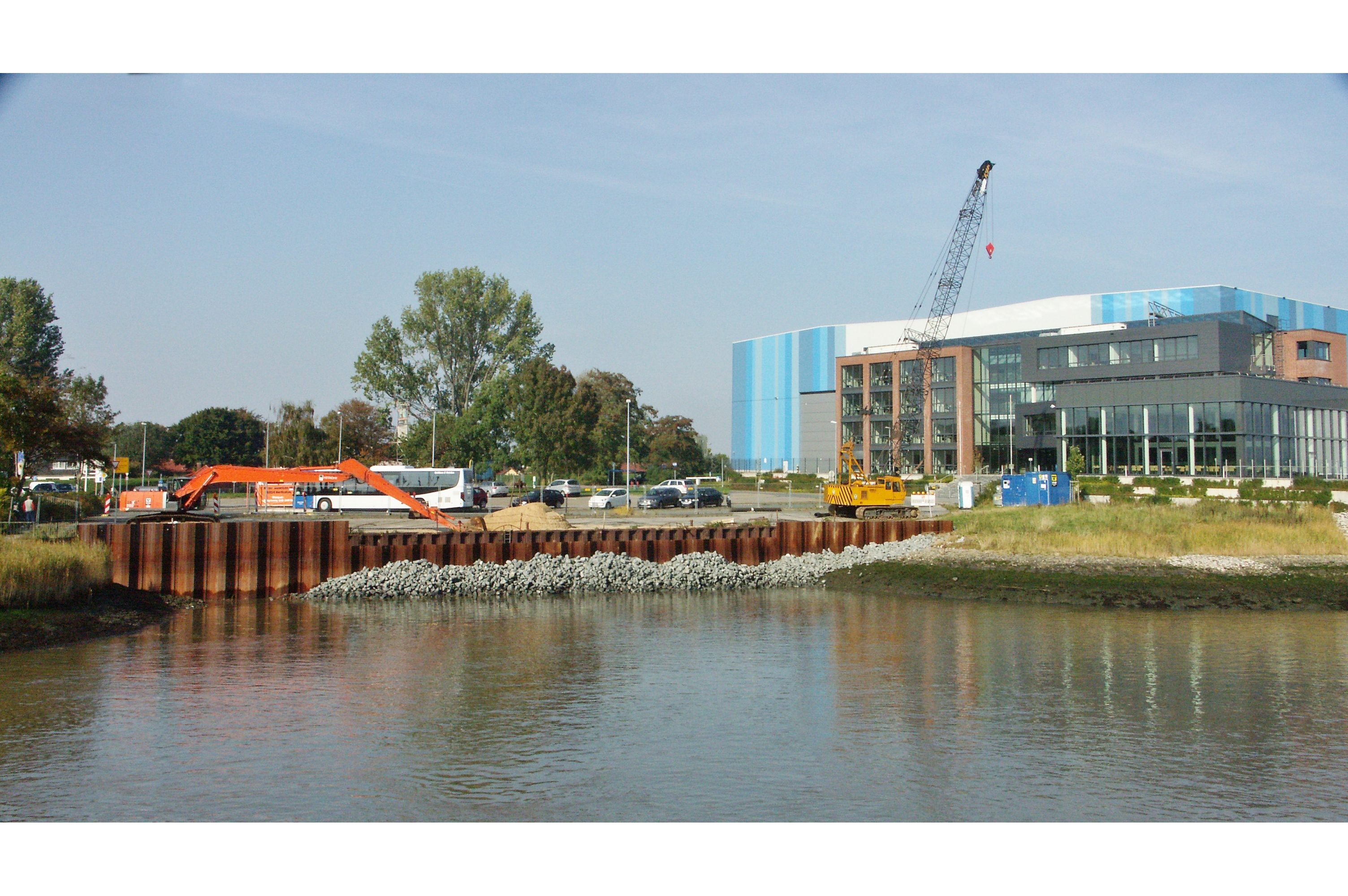 Die vormals als Parkplatz genutzte Fläche ist nach der Umgestaltung zu einem Platz mit attraktiven Naherholungsmöglichkeiten geworden. Durch eine Geländemodellierung und das Aufstellen von artifiziellen Dalben wurde das ehemalige, bis Anfang der 1960er Jahre genutzte und dann verfüllte Hafenbecken erlebbar herausgestellt.